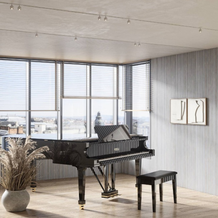 Уникальное свойство панелей W112 и W113 – это рифлёная текстура поверхности. Располагая профили ближе или дальше, вы создадите интригующий эффект света и тени, который мгновенно преобразит любой интерьер. Идеально сочетается с профилями CX190 и SX194 и дает бесконечные возможности для дизайна, при этом легко устанавливается.